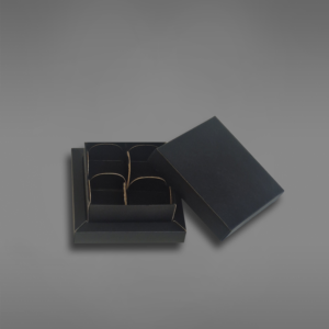 Det er plass til 4 biter konfekt i esken ved bruk av innlegg, men esken kan også fint brukes uten innlegg.