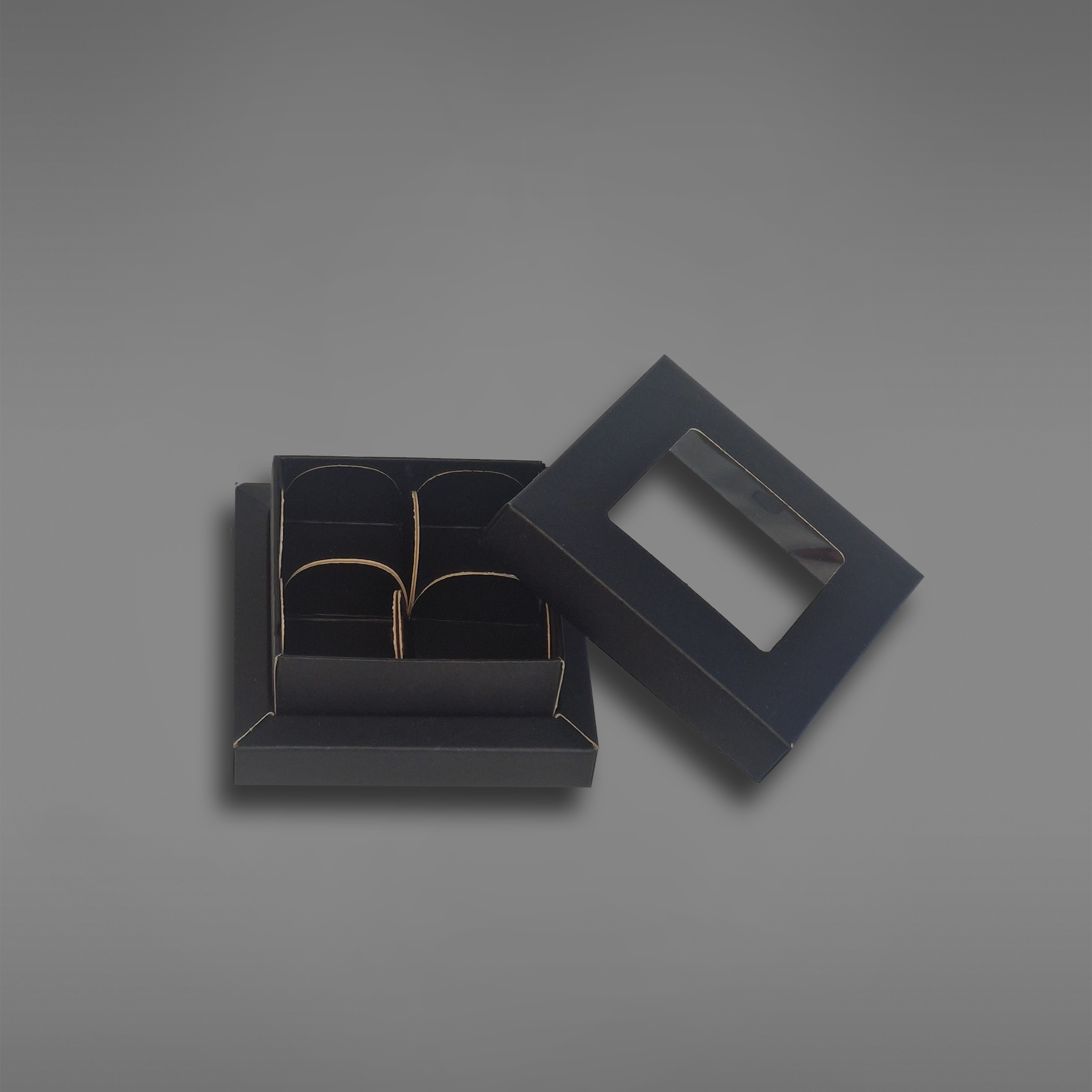 Det er plass til 4 biter konfekt i esken ved bruk av innlegg, men esken kan også fint brukes uten innlegg.