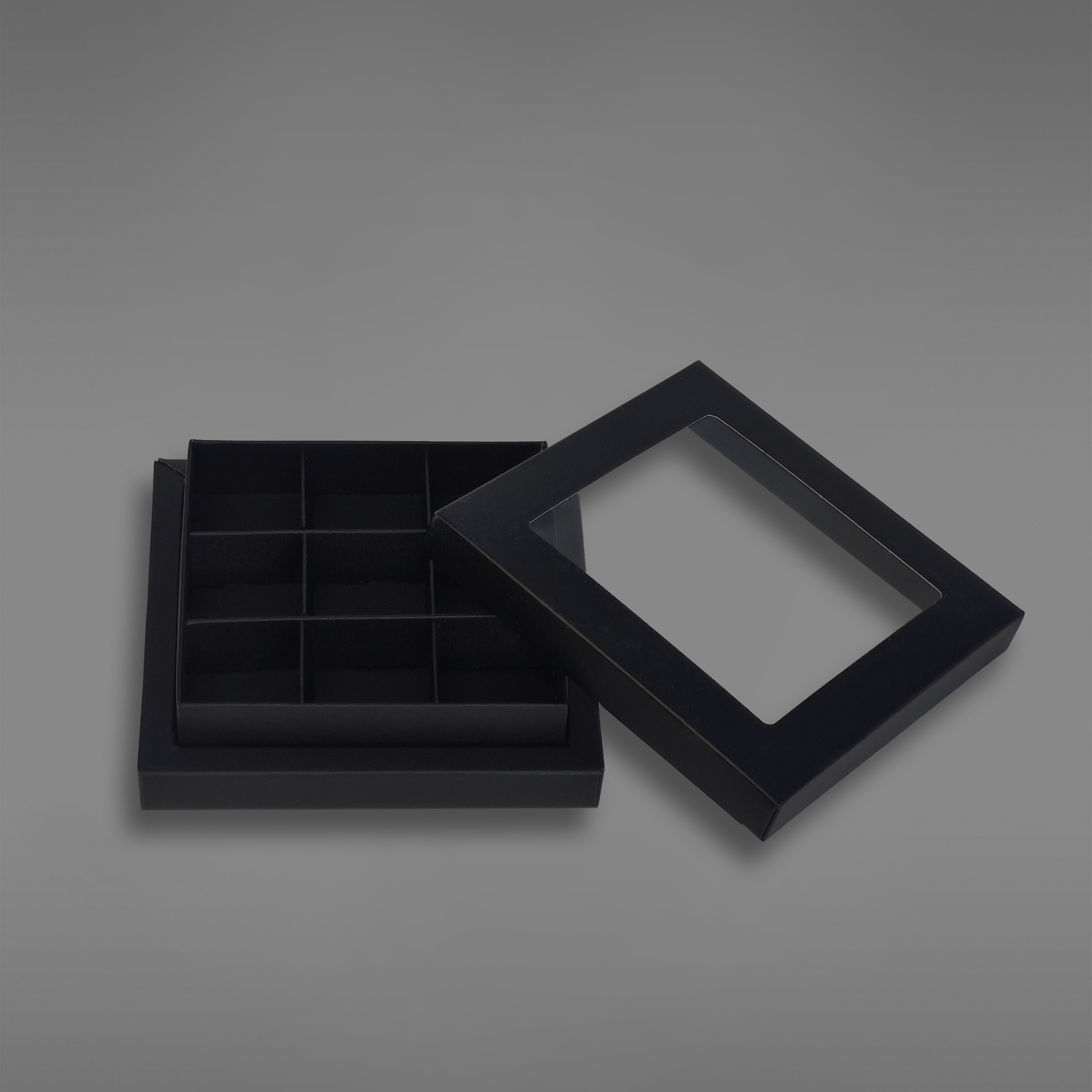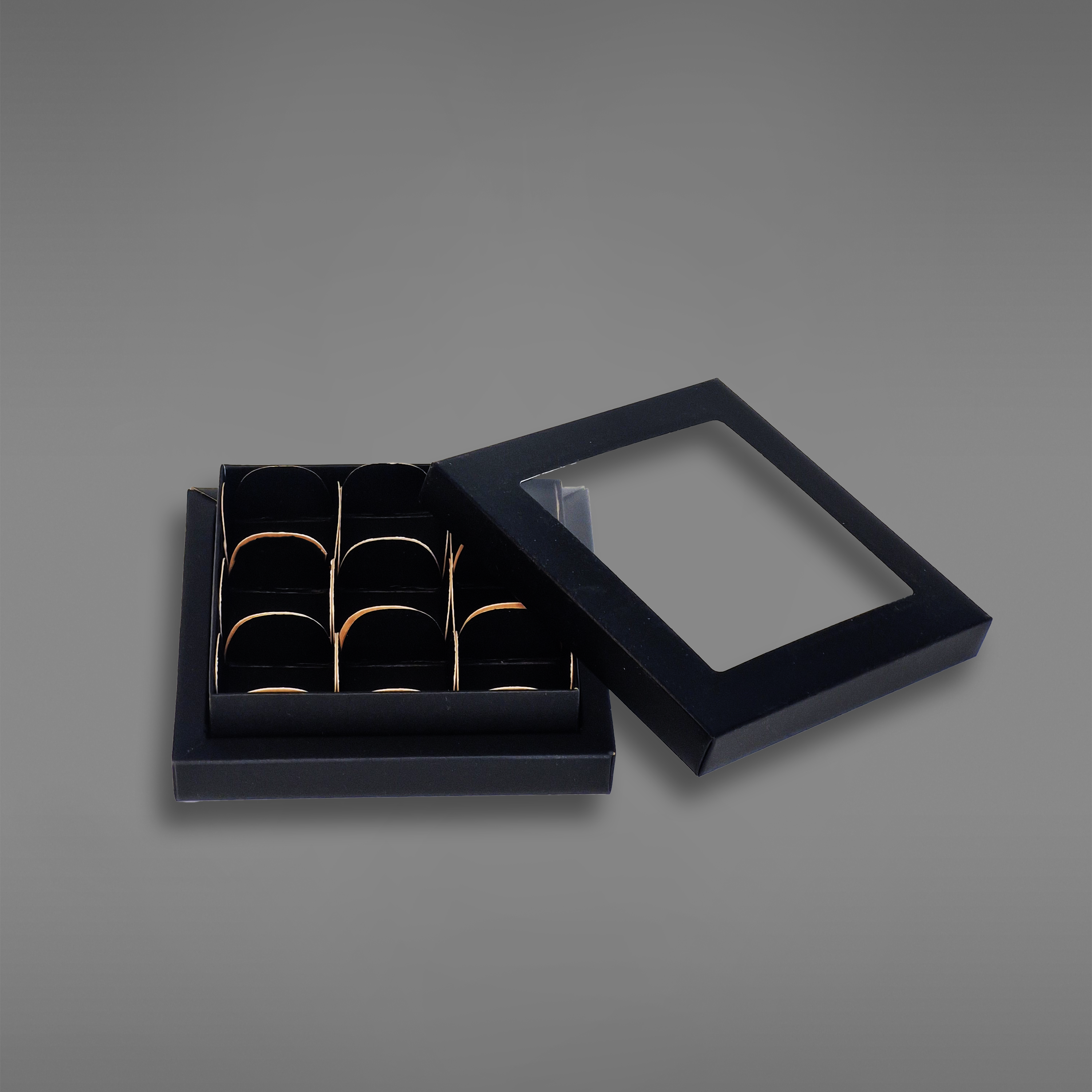 Det er plass til 9 biter konfekt i esken ved bruk av innlegg, men esken kan også fint brukes uten innlegg.
