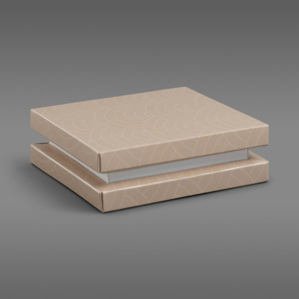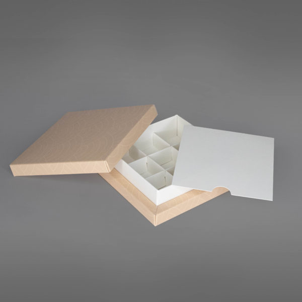 Det er plass til 9 biter konfekt i esken ved bruk av kryssinnlegget, men esken kan også fint brukes uten innlegg.